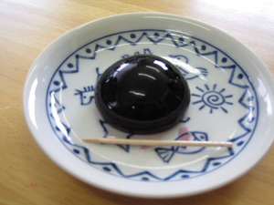 ゼリーを包んでるゴムをヨウジつっつくとパッとゼリーが飛び出します!