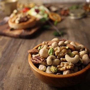 様々な種類のナッツが食卓で楽しまれています。