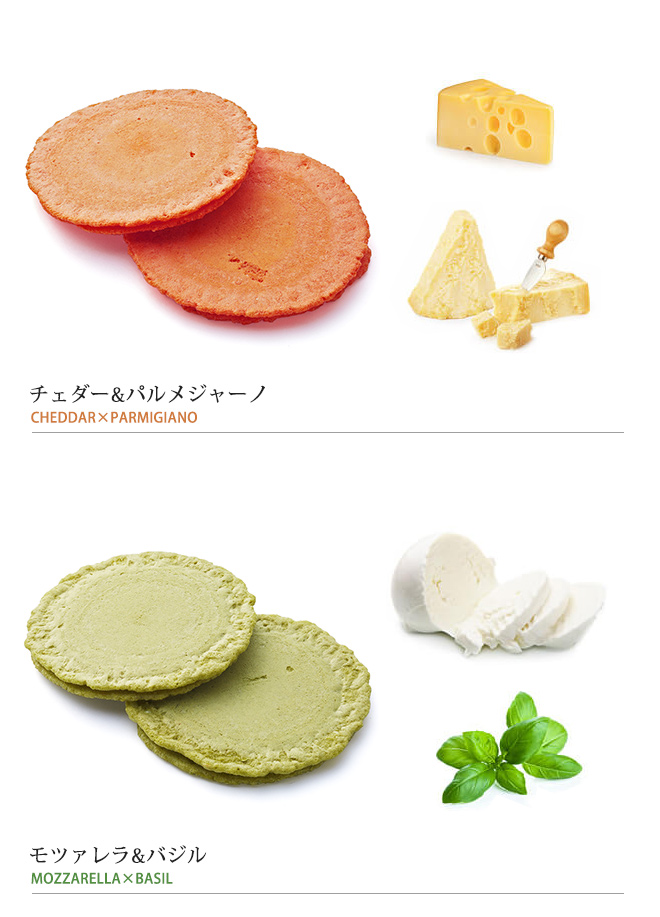 本格チーズを4種を4色のカラフルなえびせんべいでサンドしてありました。