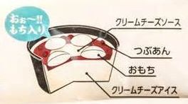 クリームチーズアイス、あん、もち、チーズソースの4層になってますが、