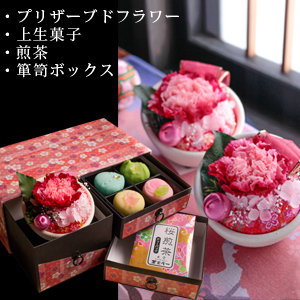 あなたも、大好きなお母さんに和風プリザーブドフラワー&上生菓子セットを、